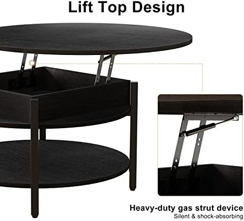 FABATO Round Lift Top Coffee Table with Storage and Hidden Compartment, 35.43” Farmhouse Coffee Table for Living Room Reception Room, 2 Tier Large Round Coffee Table Round Dining Table, Black