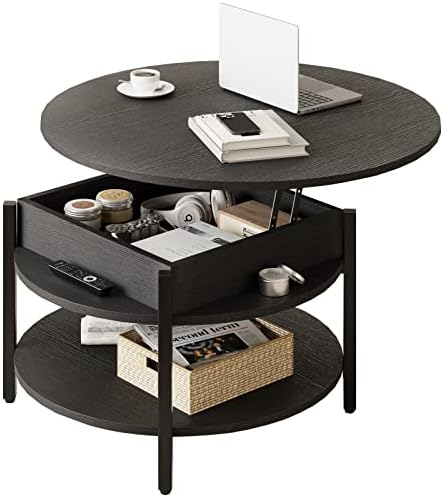 Upgrade your living space with the FABATO Round Lift Top Coffee Table with Storage and Hidden Compartment. Bring style, functionality, and a touch of farmhouse charm to your home.,