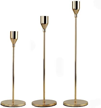 Set of 3 Gold Candlestick Stand, Wedding/Dinning Table Decorative Candle Holder, Golden Candlelight Dinner Candle Holder Ornaments(S+M+L)