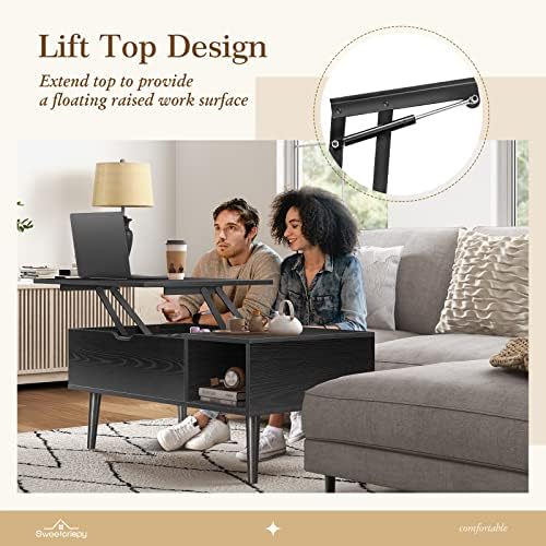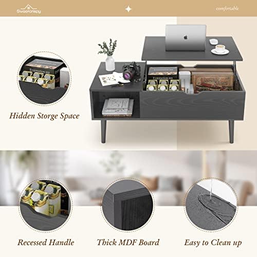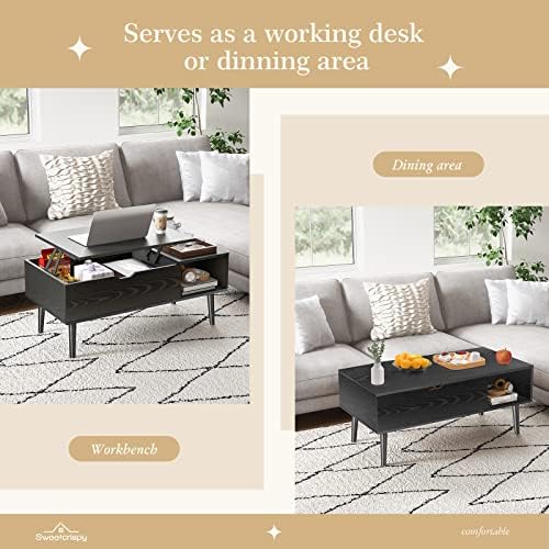 Sweetcrispy Coffee Table, Lift Top Coffee Tables for Living Room,Rising Tabletop Wood Dining Center Tables with Storage Shelf and Hidden Compartment (Black)